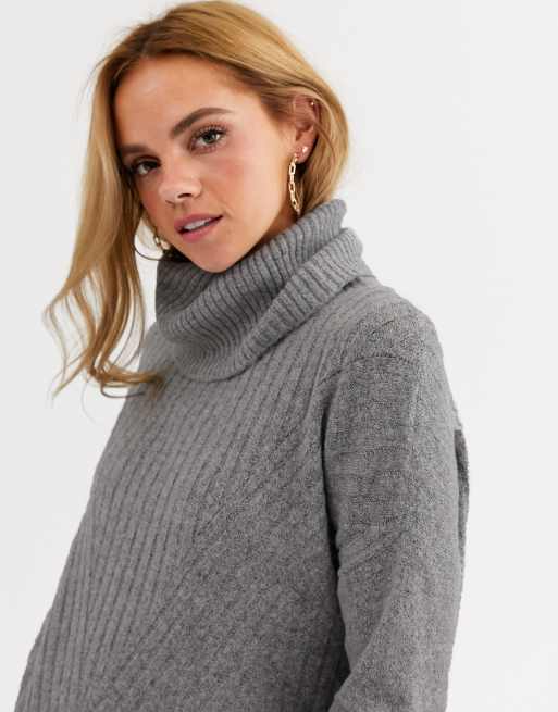 Pull col roulé outlet gris femme, Pull col roul gris clair outlet