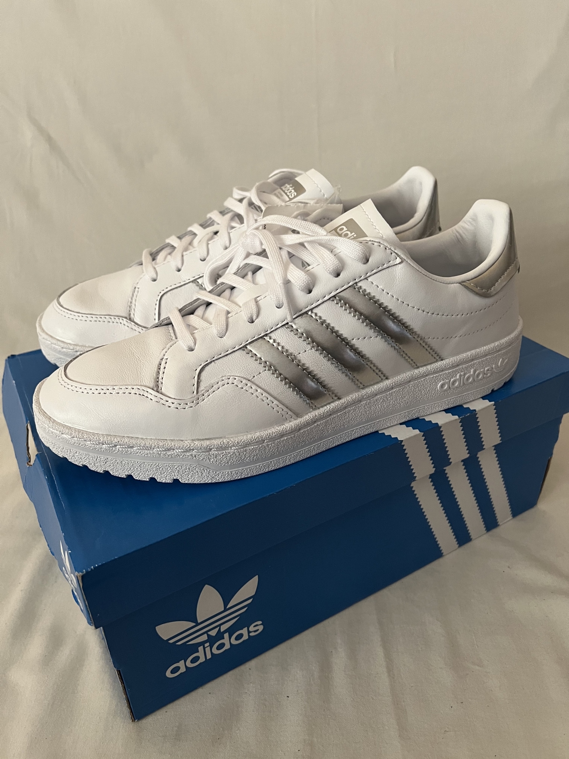 Adidas Original Womens TEAM COURT WHITE SILVER EG9824 Sz 5 Good