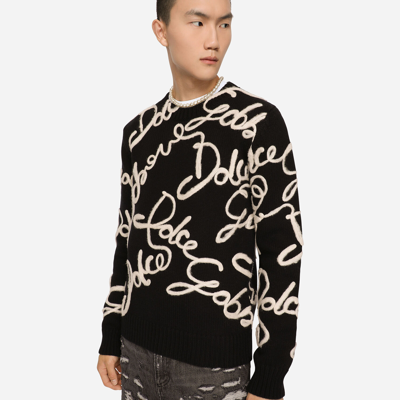 Dolce Gabbana Embroidered Logo Wool blend Sweater In Black