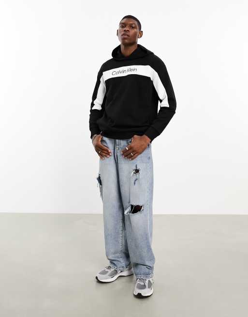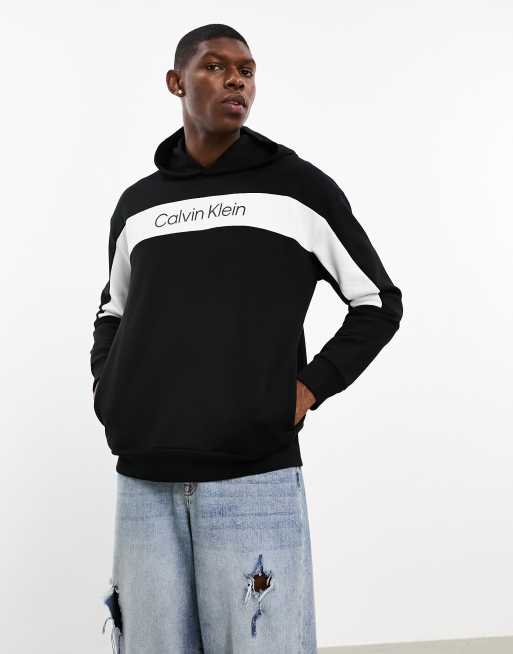 Sweat calvin outlet klein noir, Calvin Klein Sweat capuche logo style color block Noir ASOS outlet