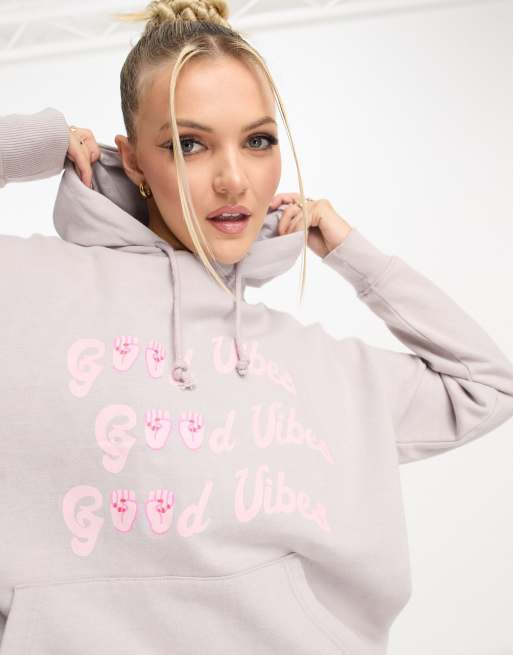 Sweat a outlet capuche mauve, Heartbreak Sweat capuche inscription Good Vibes Mauve outlet