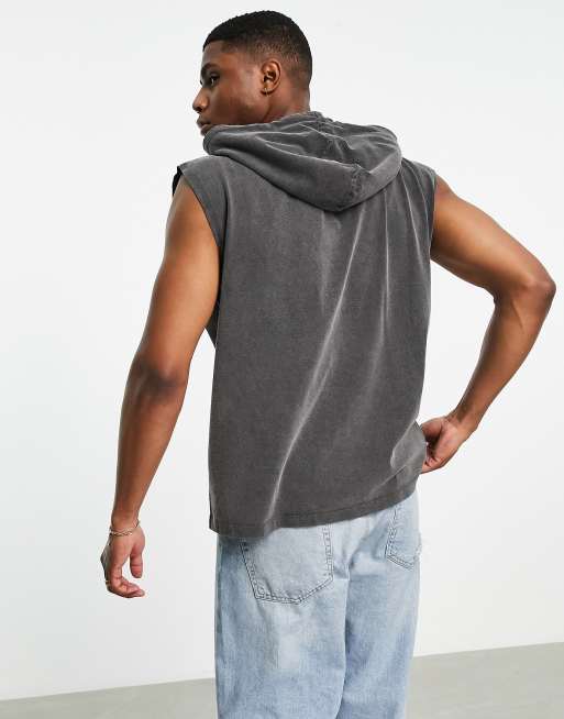 ASOS DESIGN Gilet capuche oversize avec imprim style basketball universitaire sur le devant Noir d lav
