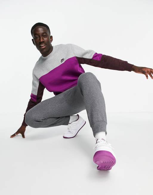 Nike color block crew neck sweatshirt in purple multi