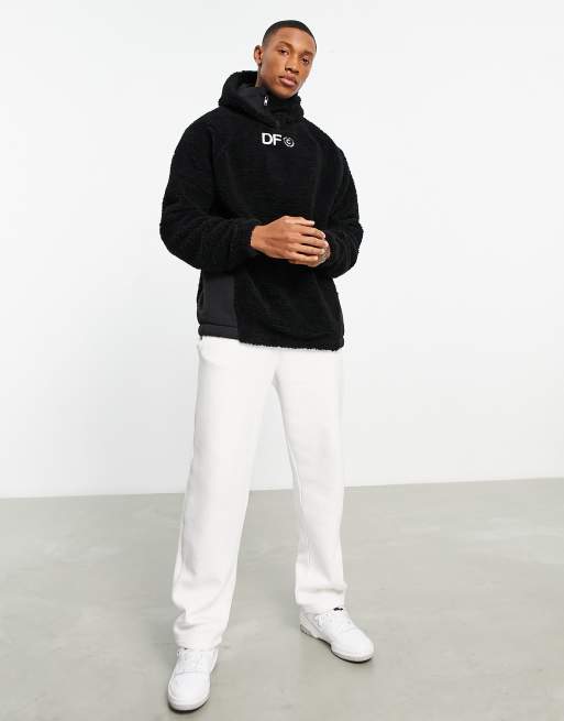 ASOS Dark Future Sweat capuche oversize en imitation peau de mouton duveteuse avec broderie logo et cagoule Noir