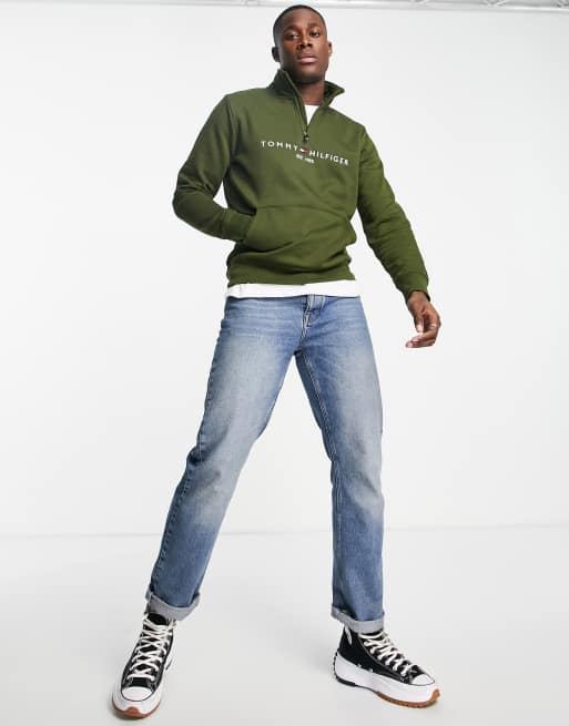 Tommy Hilfiger Sweat avec logo drapeau brod et col zipp Vert