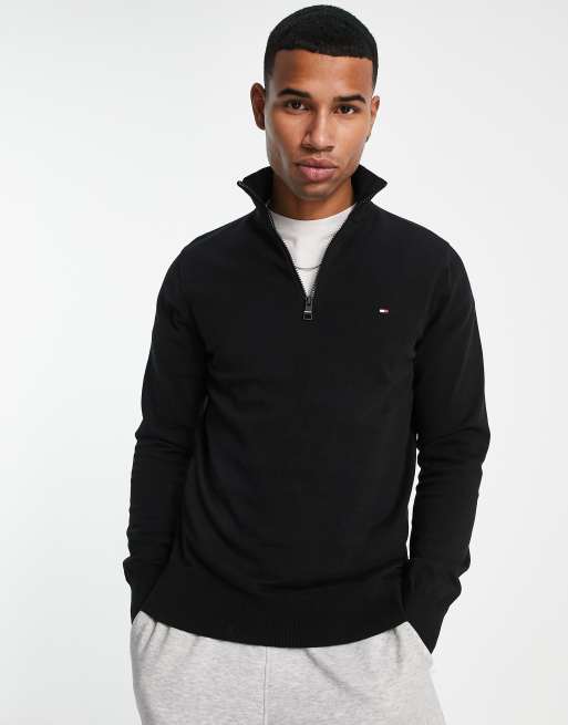Tommy Hilfiger 1985 Pull en maille de coton logo drapeau et col zipp Noir
