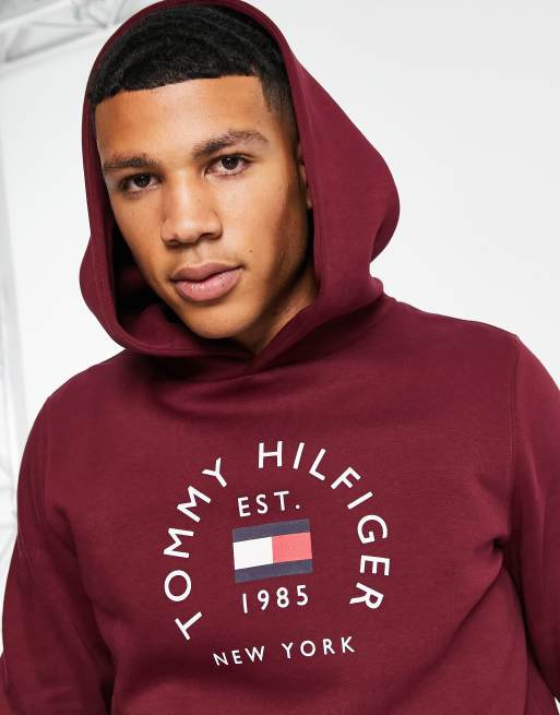 Tommy Hilfiger Sweat capuche en coton m lang avec logo drapeau incurv Bordeaux