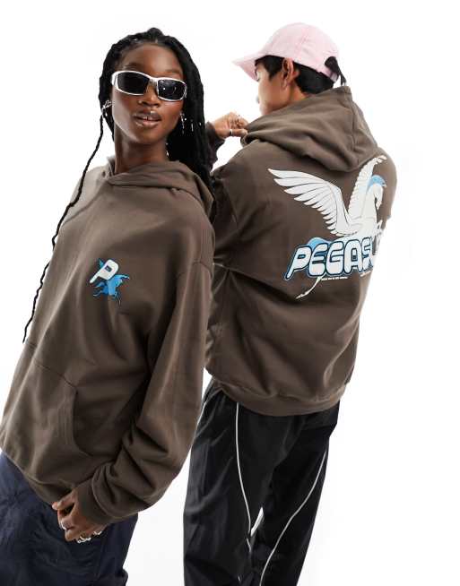 ASOS DESIGN Sweat capuche unisexe oversize avec gros imprim Pegasus et Hercules de Disney au dos Marron