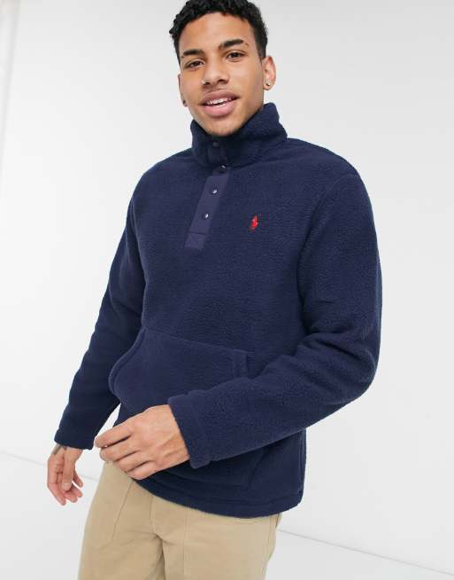 Polo Ralph Lauren Sweat en polaire col boutonn et logo joueur de polo Bleu marine