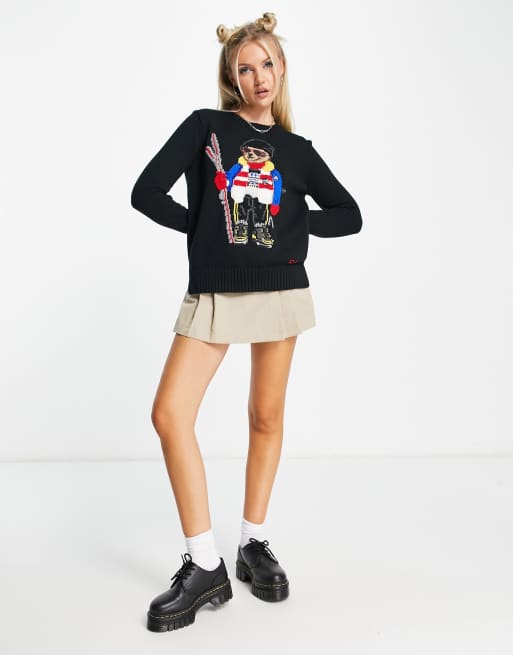 Polo Ralph Lauren Pull en maille avec motif ours au ski Noir