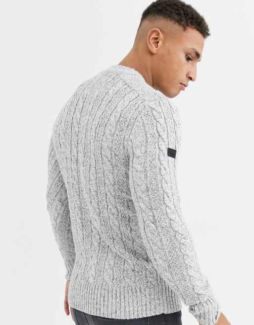 Superdry Jacob Pull col roul en maille torsad e Gris clair