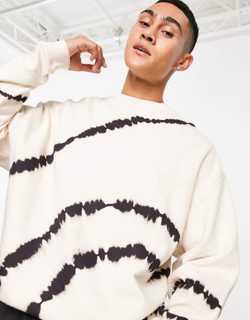 ASOS DESIGN Sweat oversize rayures effet tie dye Beige et