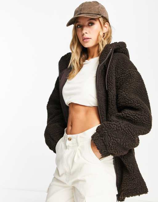 ASOS Hoodie oversize crois en imitation peau de mouton avec ourlet resserr par cordon