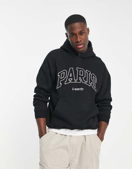 Sweat noir pull outlet and bear, Pull Bear Sweat capuche inscription Paris Noir outlet