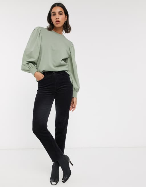 Stradivarius Sweat shirt manches bouffantes en popeline Kaki