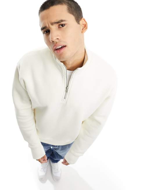 Pull Bear 1 4 zip sweatshirt in ecru ASOS