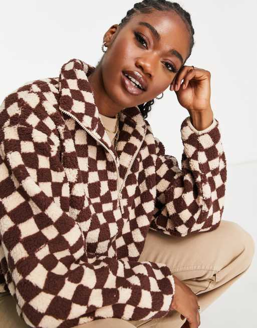 Sweat damier outlet, Cotton On Active Sweat en sherpa imprim damier Marron ASOS outlet
