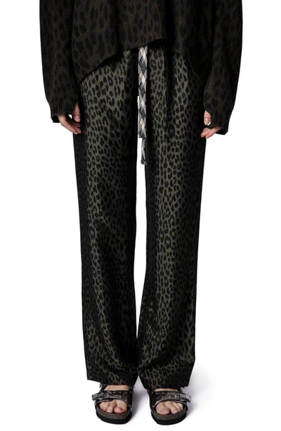 Pull leopard zadig outlet et voltaire, Zadig Voltaire Parone Leopard Animal Print Drawstring Jogger Pull On Pants 36 outlet
