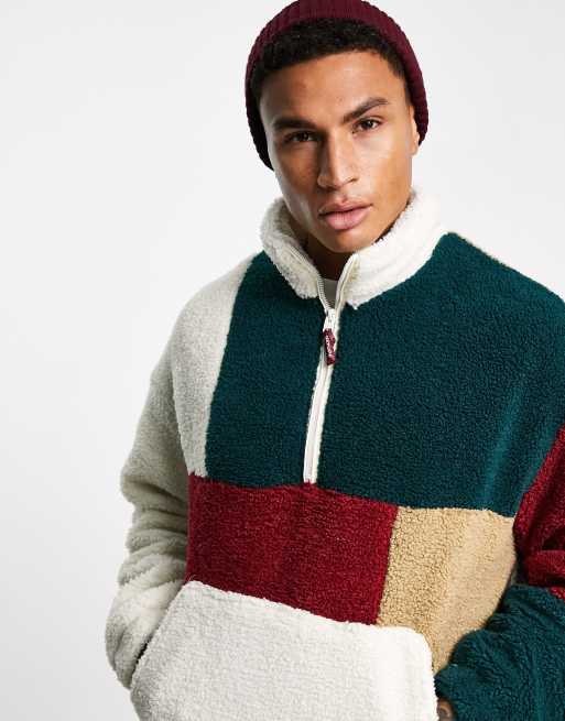 Bershka oversized cut and sew pullover in multi sherpa