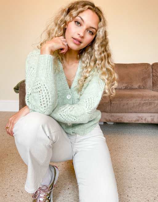 Pimkie Gilet boutonn en maille pointelle Vert sauge