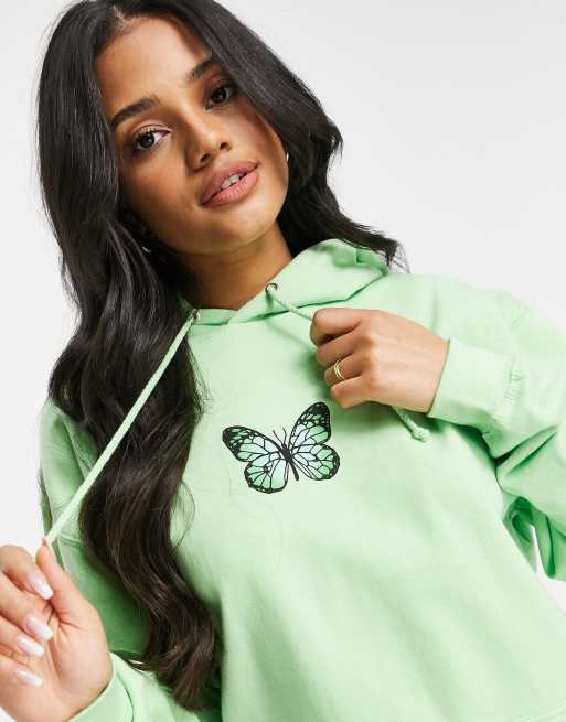 Sweat shirt capuche avec image de papillon bleu Streetwear de