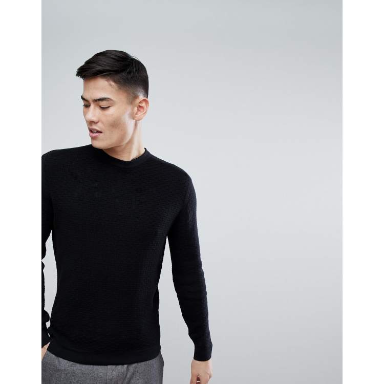 Mango Homme Pull ras de cou en tricot Noir ASOS
