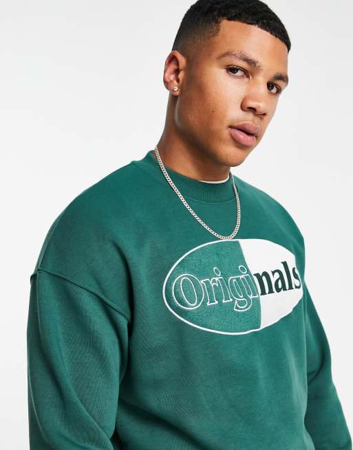 Sweatshirt jack outlet and jones, Jack Jones Green Varsity Logo Hoodie New Look outlet