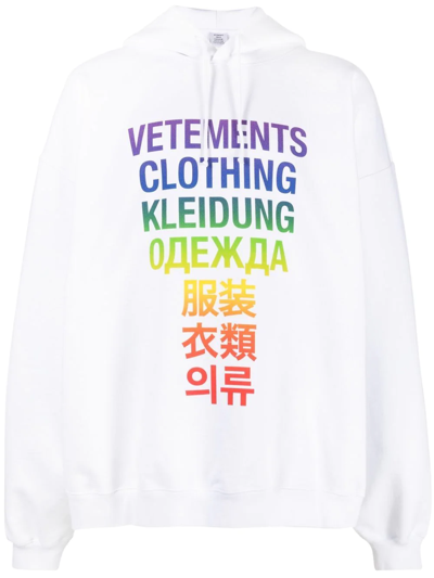 Vetements Translation Print Cotton Molleton Hoodie In White ModeSens