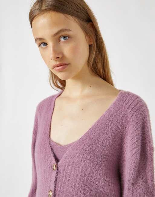 Pull Bear Gilet court doux au toucher d ensemble Rose