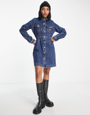 Tommy Jeans slim denim button up dress in dark wash ASOS