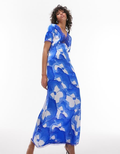 Topshop Robe longue habill e col en V avec appliques Bleu