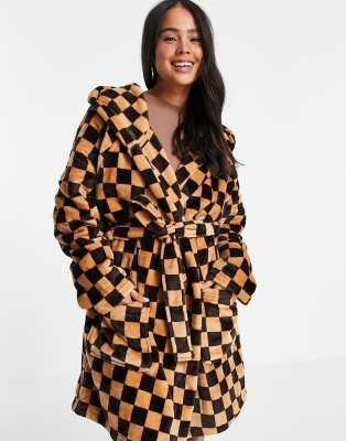 Topshop Check Pattern Hooded Robe neutral ModeSens