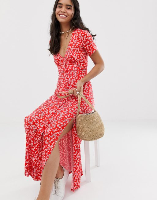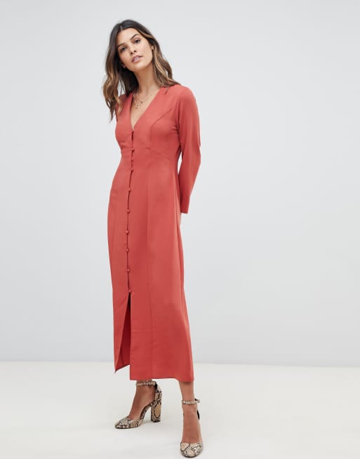 Robe outlet longue boutonnée, ASOS DESIGN Robe longue boutonn e sur le devant avec fentes et outlet