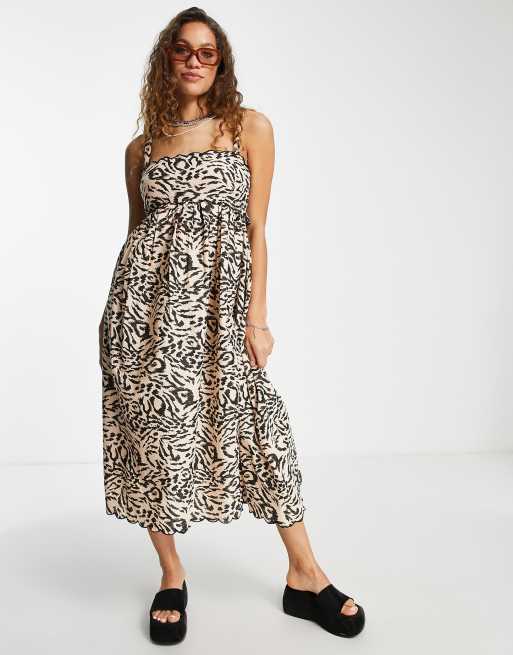 Asos robe outlet longue été, ASOS DESIGN Robe d t mi longue imprim animal et bords festonn s avec fente horizontale au dos outlet