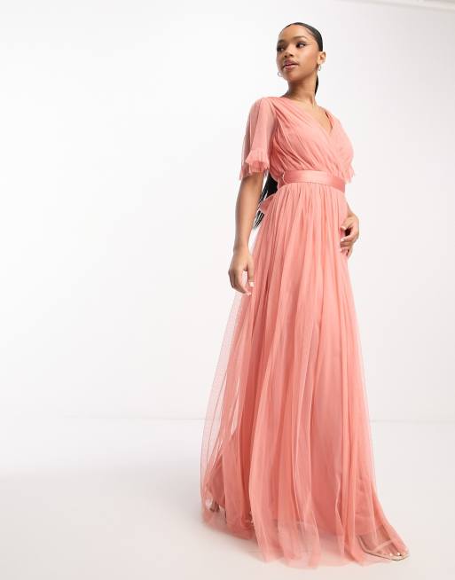Robe Mere Mariee Soir e Chic Longue Corail Mousseline Manche 3 4 Col V