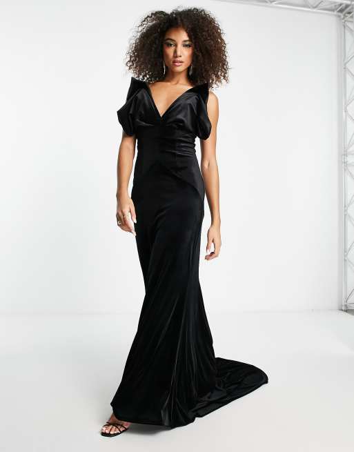 ASOS DESIGN Robe longue en velours avec corsage sculpt et tra ne Noir