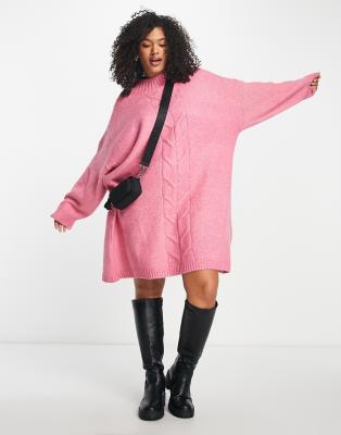 Only Curve Robe pull oversize courte en maille torsad e Rose