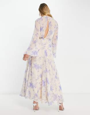 Robe longue outlet fleurie asos, ASOS DESIGN Robe longue en mousseline fleurie manches longues et poignets volant s outlet