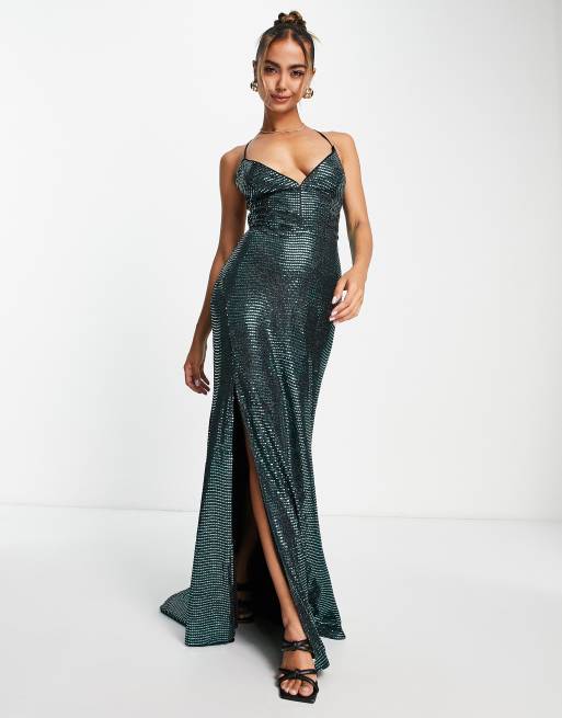 Little Mistress Robe longue effet sir ne d collet plongeant Vert meraude