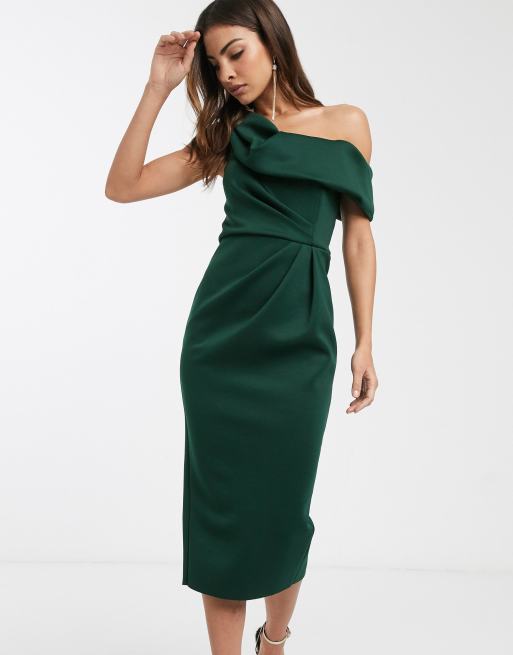 ASOS DESIGN Robe fourreau fluide mi longue paules tombantes Vert bouteille