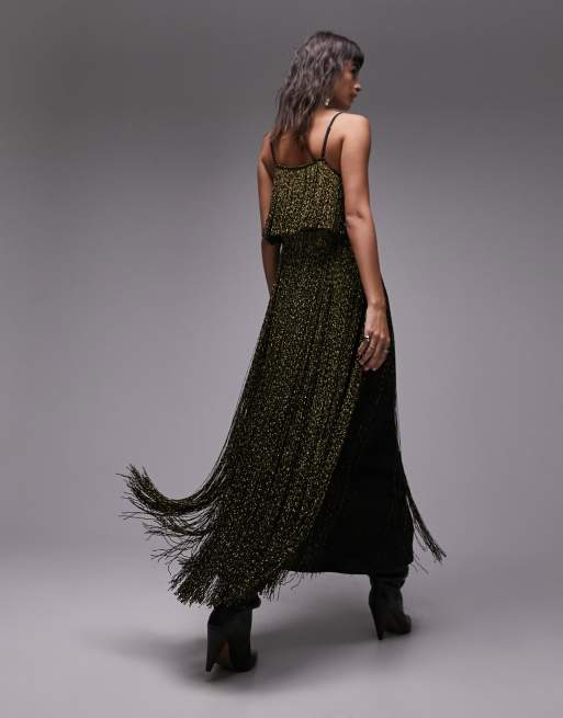 Topshop Robe longue m tallis e franges Dor et noir ASOS