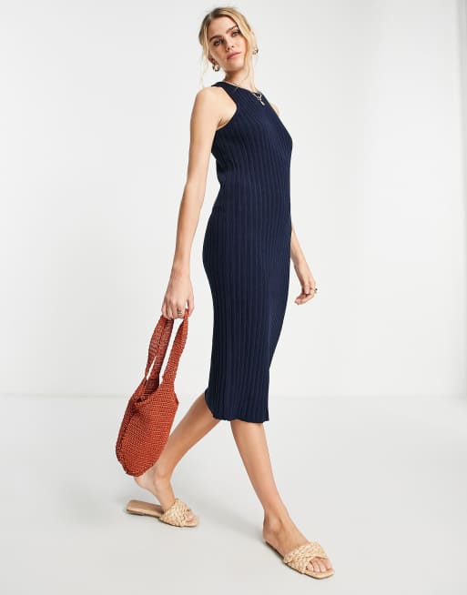 Robe bleu marine outlet mi longue, ASOS DESIGN Robe mi longue en maille boucl e naturelle Bleu outlet