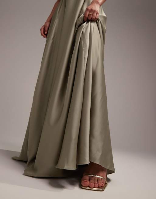 ASOS DESIGN Robe longue de demoiselle d honneur en satin avec bretelles fines et jupe fluide Vert sauge