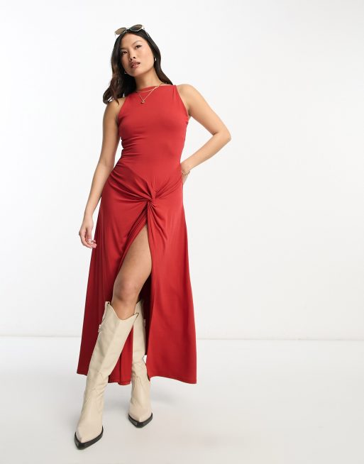 ASOS DESIGN Petite Robe longue lani res et d tail torsad Rouge piment