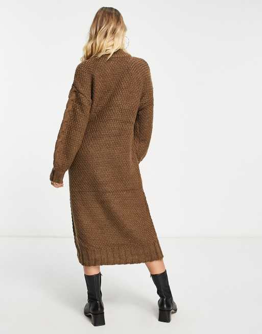 Robe Pull En Maille paisse Kaki Ourlet lim PrettyLittleThing