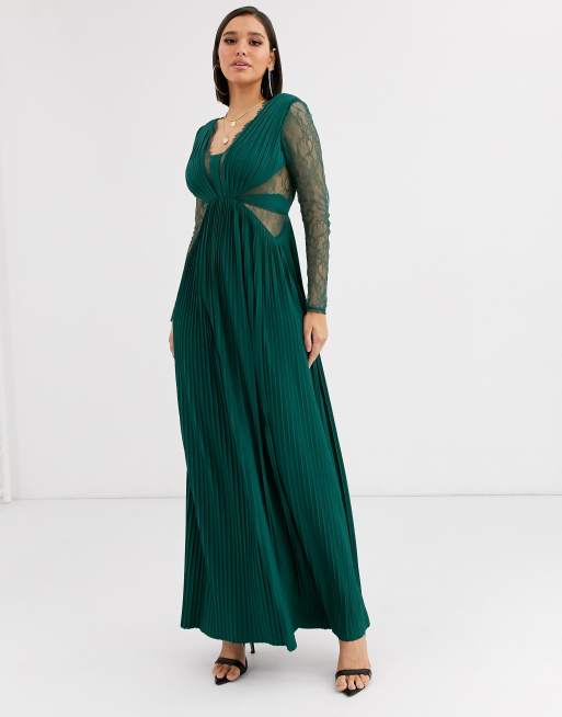ASOS DESIGN Robe longue pliss e manches longues avec dentelle