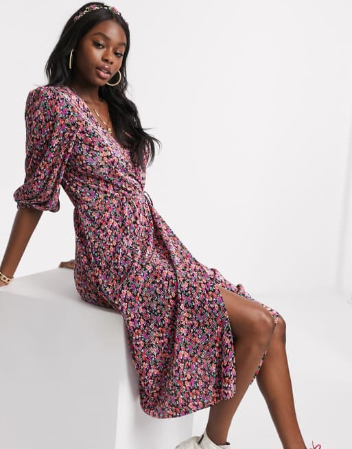 Pull Bear Robe cache c ur mi longue pliss e imprim floral Rose