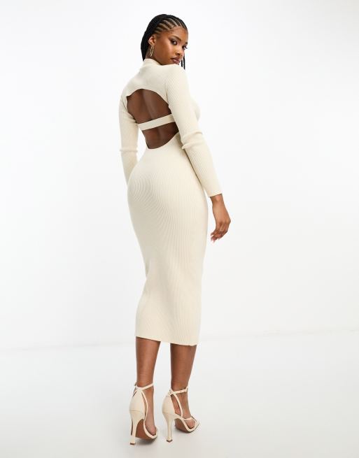 Simmi Robe pull mi longue en maille dos ouvert Taupe