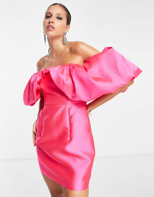 Asos robe outlet cocktail rose, ASOS EDITION Robe courte satin e manches volumineuses Rose outlet