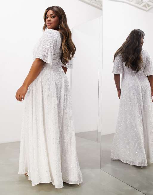 ASOS EDITION Curve Robe de mariage longue sequins avec manches vas es